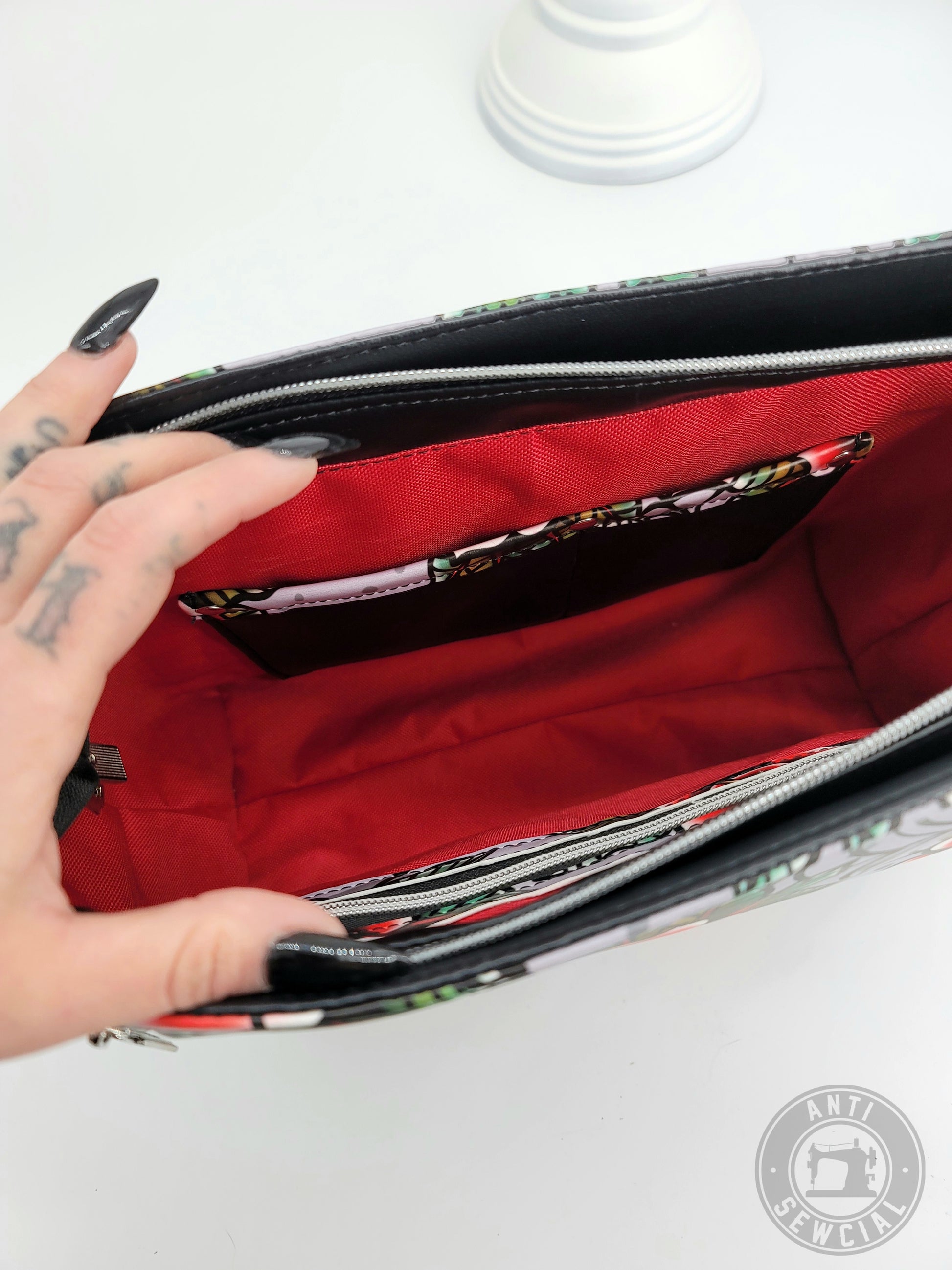 This elegant shoulder bag features a top main zippered closure with an extra wide opening and a front pocket accessible from either front zipper. The interior of the bag is equally luxurious, with an interior slip pocket and zippered pocket that add to its convenience and appeal. For those who are looking for extra security, this bag can also be used as a concealed carry.